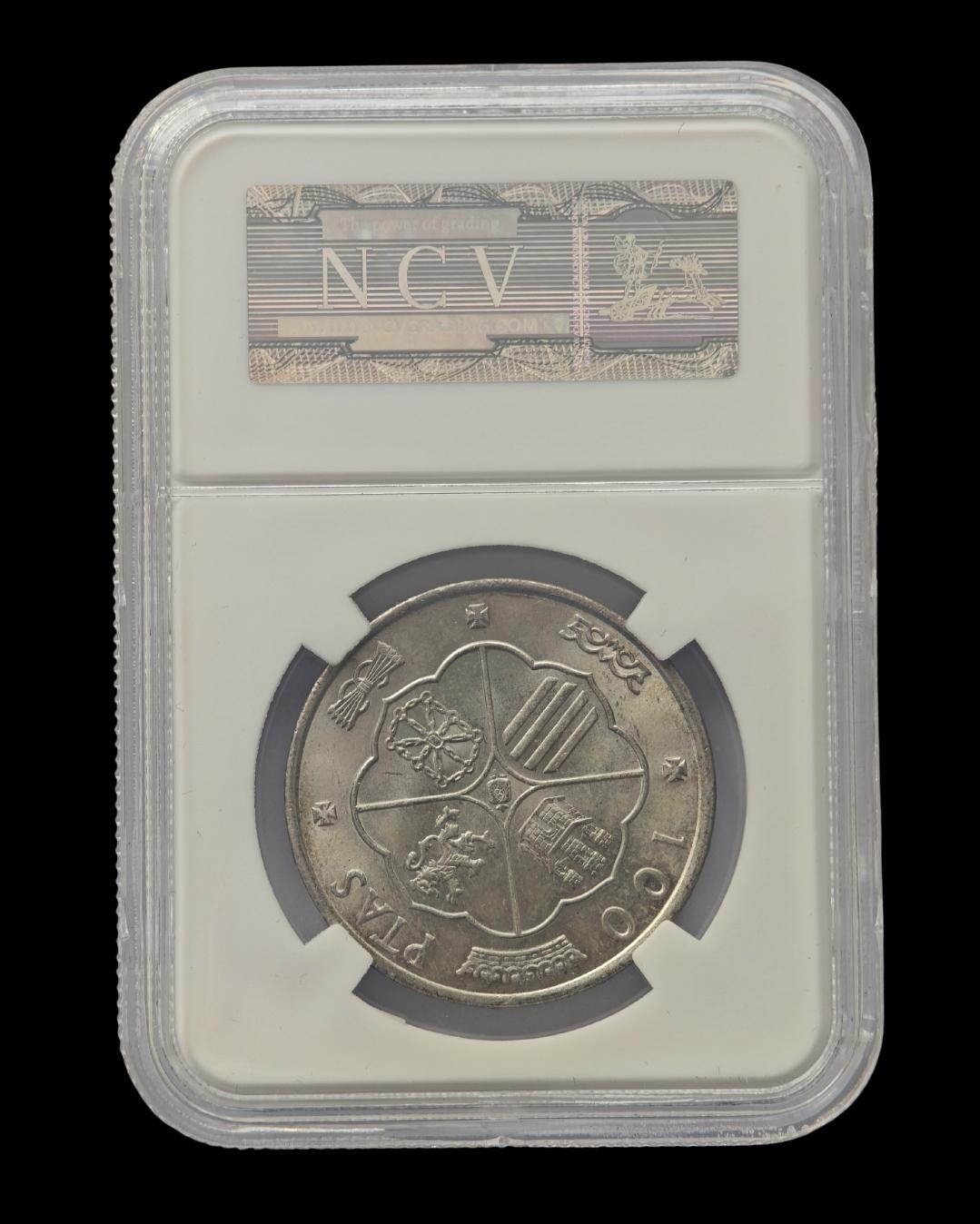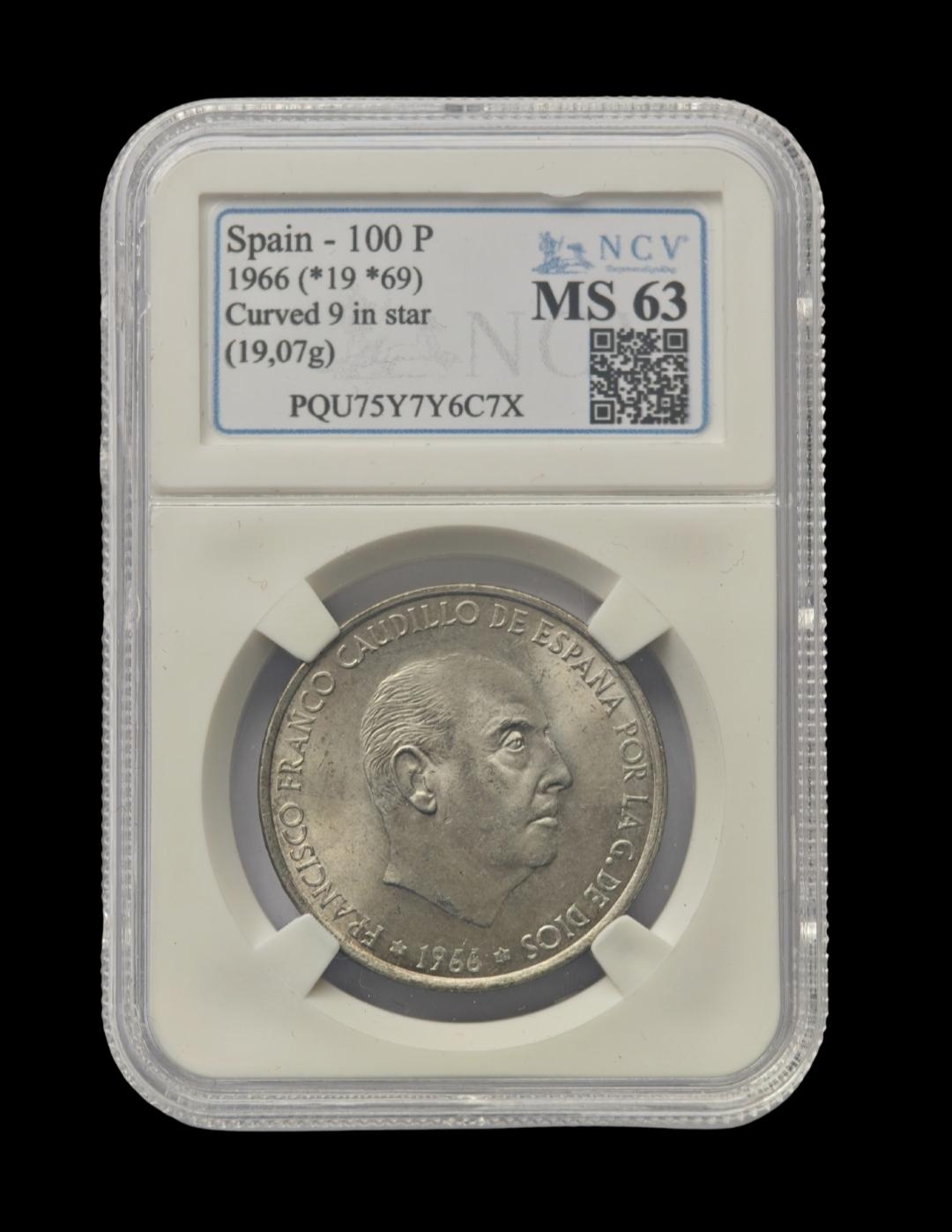 100 PESETAS PLATA 1966 *19 *69 PALO CURVO